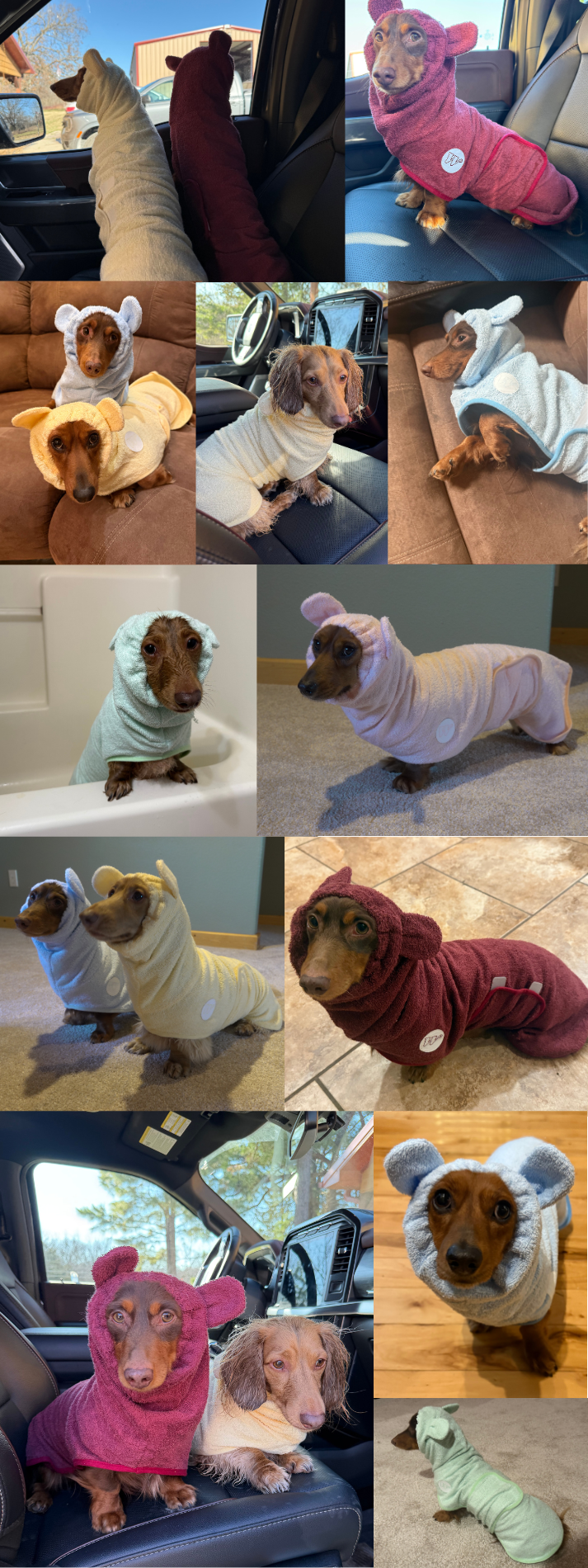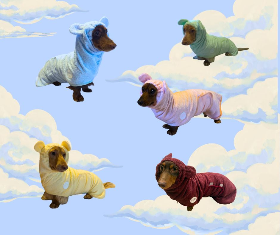 We've thoughtfully designed the dachshund bathrobe for their long bodies and short legs to keep your weenie warm, dry, and free to zoom around in comfort.